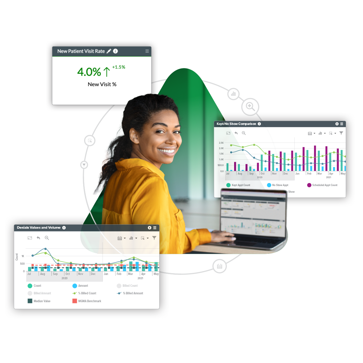 Know where and when your practice trends in the wrong and right direction, where you are performing well and falling short, and how to recover your claims denial revenues quickly. MGMA Analytics is designed to give you a holistic view of your revenue cycle and daily operations—and provide ways to boost your performance to put your business at the top