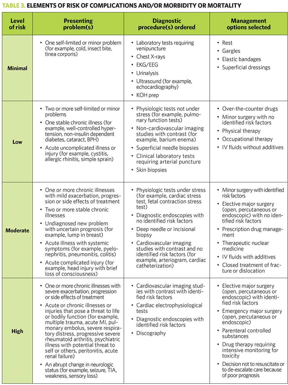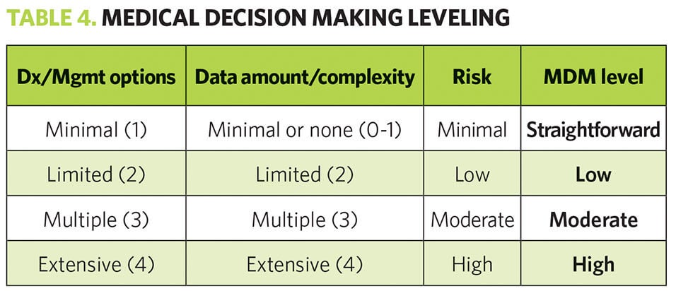 Some payers look mainly at MDM when determining medical necessity, which is the overarching criterion for payment. This is because the risk portion of MDM (risk of complications and/or morbidity or mortality) is closely tied to medical necessity. Some payers even require MDM as one of two factors when leveling services for subsequent or established patients. Furthermore, the Centers for Medicare & Medicaid Services (CMS) is moving toward requiring only MDM as the sole leveling factor for outpatient visits. Such a move could set the standard with other payers. Given its importance, MDM deserves a thorough review.