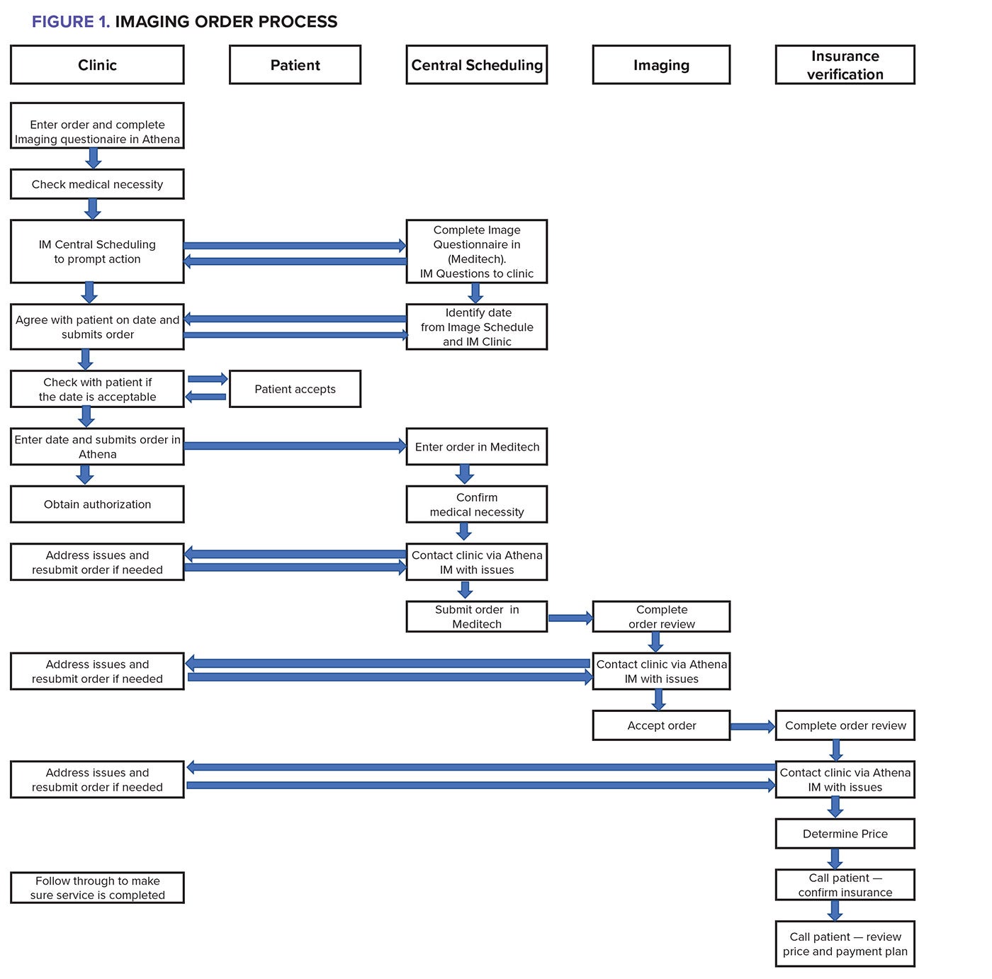 The interdepartmental teams discovered an operational misalignment occurred when the imaging department’s steps to manage operating costs had inadvertently restricted access to its services. By realigning around the shared mission and establishing a more efficient value steam the patient access problem was addressed and imaging volume increased significantly with just a small increase in staffing costs.