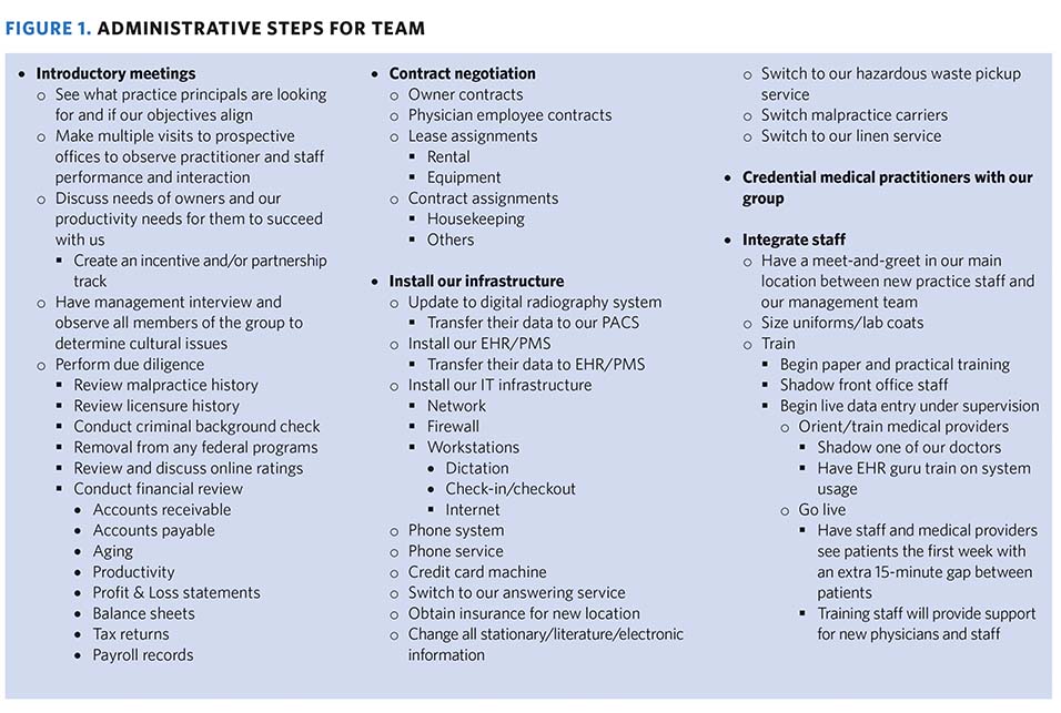 There are numerous elements of due diligence involved in leading to a relationship in which they can become part of a larger organization that will make the clinics stronger individually and as a whole.
