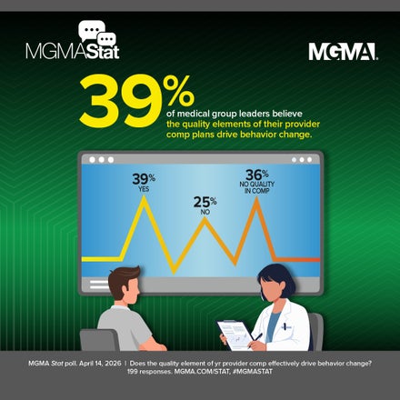 - MGMA Stat polls are conducted weekly to give medical practice leaders a pulse on the latest trends in healthcare management. To participate, sign up for MGMA Stat at mgma.com/mgma-stat.