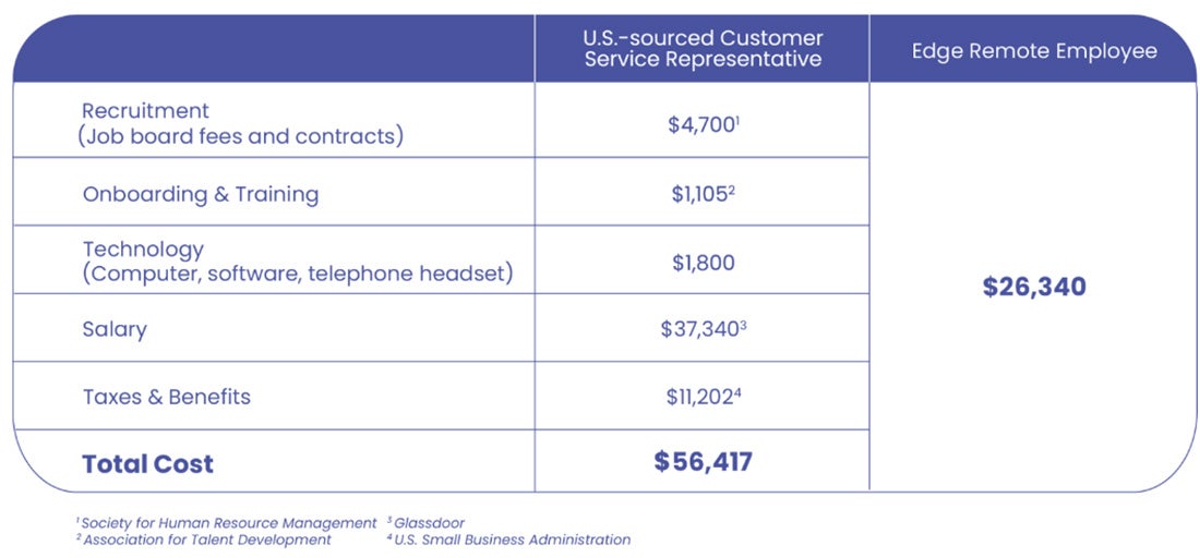 The future of work is remote, so tap into the market of untapped global talent and save up to 50% on recruitment costs, salaries, and benefits per hire with Edge. With an educated, qualified talent pool accepted at a rate lower than Harvard’s — we specialize in talent you can trust. Browse our website and book a 15-minute demo with one of our hiring experts to learn more.