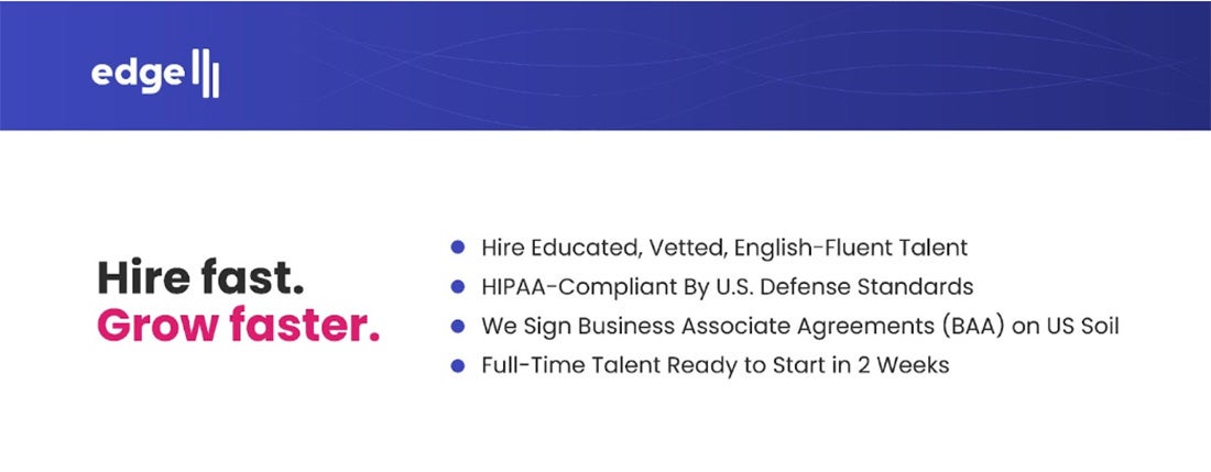 • Business Associate Agreements (BAA): Most virtual assistant agencies refuse to mitigate risk and sign a BAA, and those that do make their remote employees sign them, still leaving your business at risk. Edge signs BAAs regularly, which provides greater legal protections than if the BAA is signed by a foreign company or an employee outside the United States.